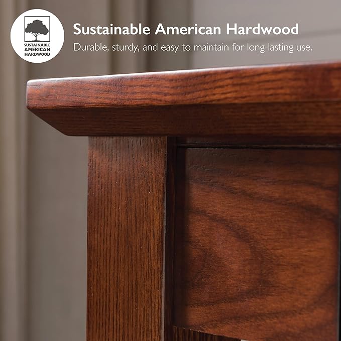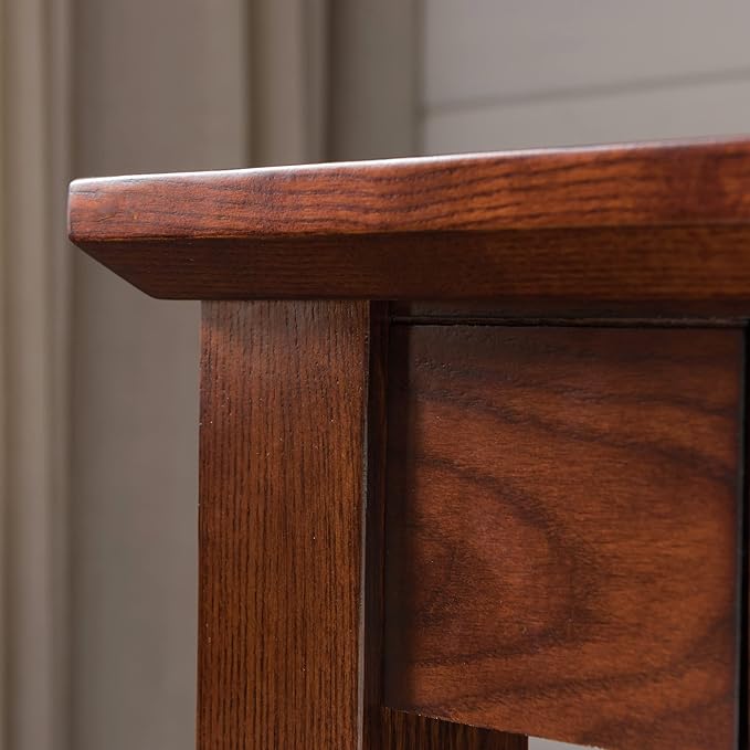 - Authentic Mission Design: Classic mission oak finish computer desk with slatted elements and blackened hardware for authentic appeal