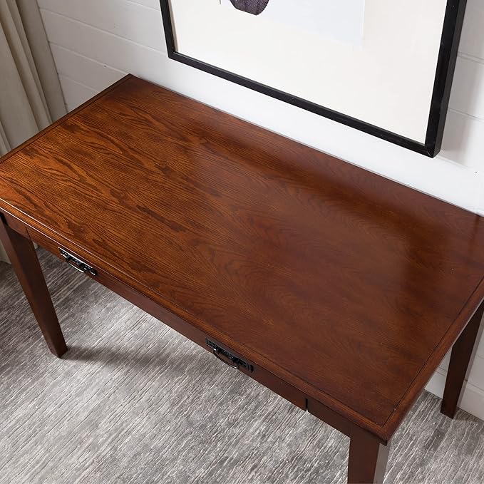 Leick Home 82400 Mission Writing Computer Desk with Drop Front Keyboard Drawer, for Home Office, Solid Wood, Mission Oak