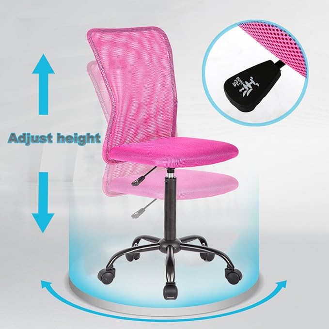 BestOffice Ergonomic Office Chair Desk Chair Mesh Computer Chair Armless Back Support Modern Executive Rolling Swivel Chair with Lumbar Support(Pink)