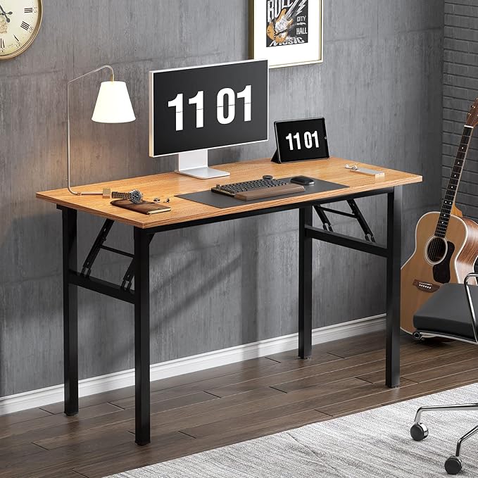 Need Home Office Desk 47 inches Folding Computer Table Workstation No Install, Teak and Black