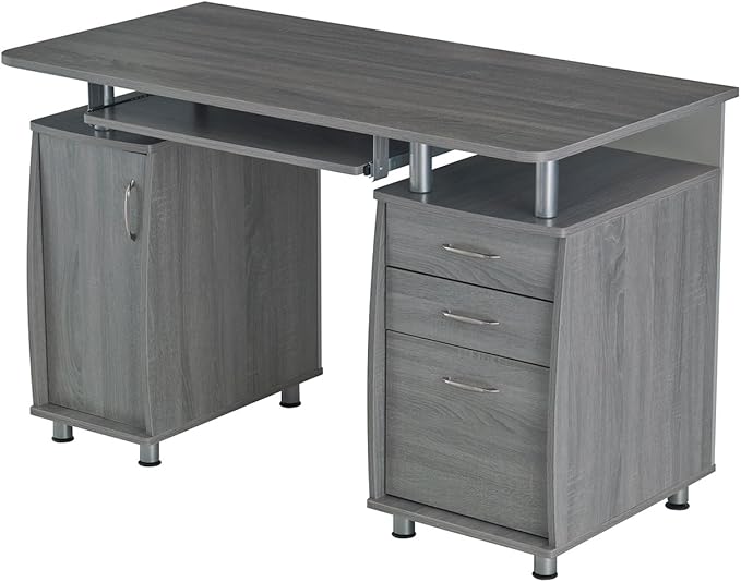 47.5'' Computer Desk with File Cabinet and Drawers, Storage Cabinet with Removable Shelf and Ventilation for CPU, Home Office Desk or Computer Workstation with Keyboard Tray, Grey