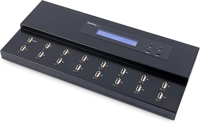 StarTech.com Standalone 1 to 15 USB Flash Drive Duplicator/Cloner/Eraser, Multiple USB Thumb Drive Copier / Sanitizer, System File / Sector-by-Sector Copy, 1.5 GB/min, 3-Pass Erase, LCD, TAA