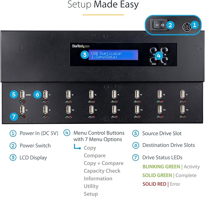 - DUPLICATE & ERASE USB DRIVES: Standalone 1 to 15 USB drive duplicator / cloner / sanitizer; Ideal for technicians and IT Pros to manage multiple USB boot drives, wipe USB drives, or quickly share data between teams; No Computer required