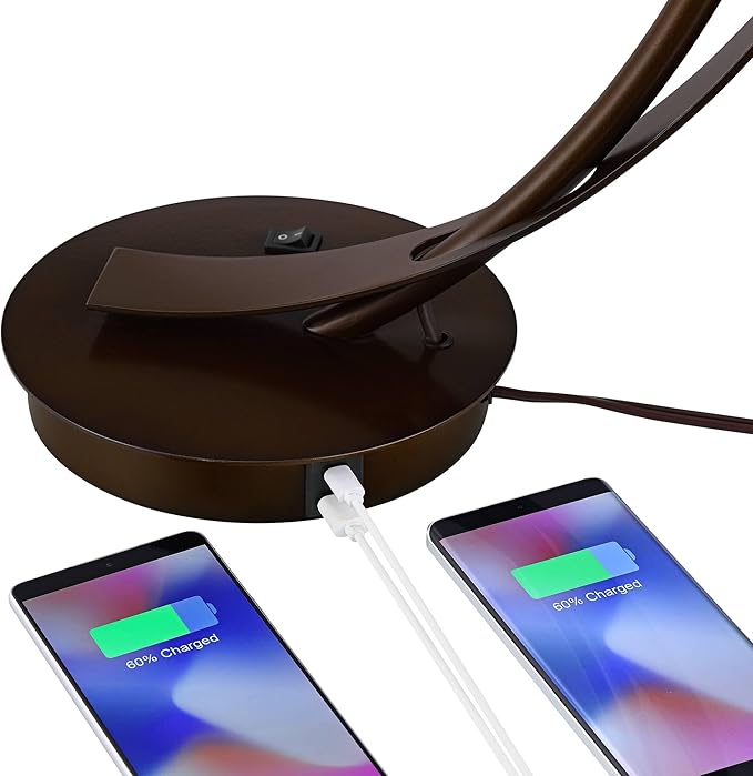 - 【Stylish and Functional Lighting】This metal table lamp by Lamps Plus is ideal as a reading light in the kitchen or as a tabletop lamp on a counter. With this brown table lamp's contemporary lines, it complements modern lamps for a living room and creates a sophisticated look in any setting. USB table lamp design from the Possini Euro Design brand. Built-in dual USB (A+C) port in base powers smart phones and electronic devices.