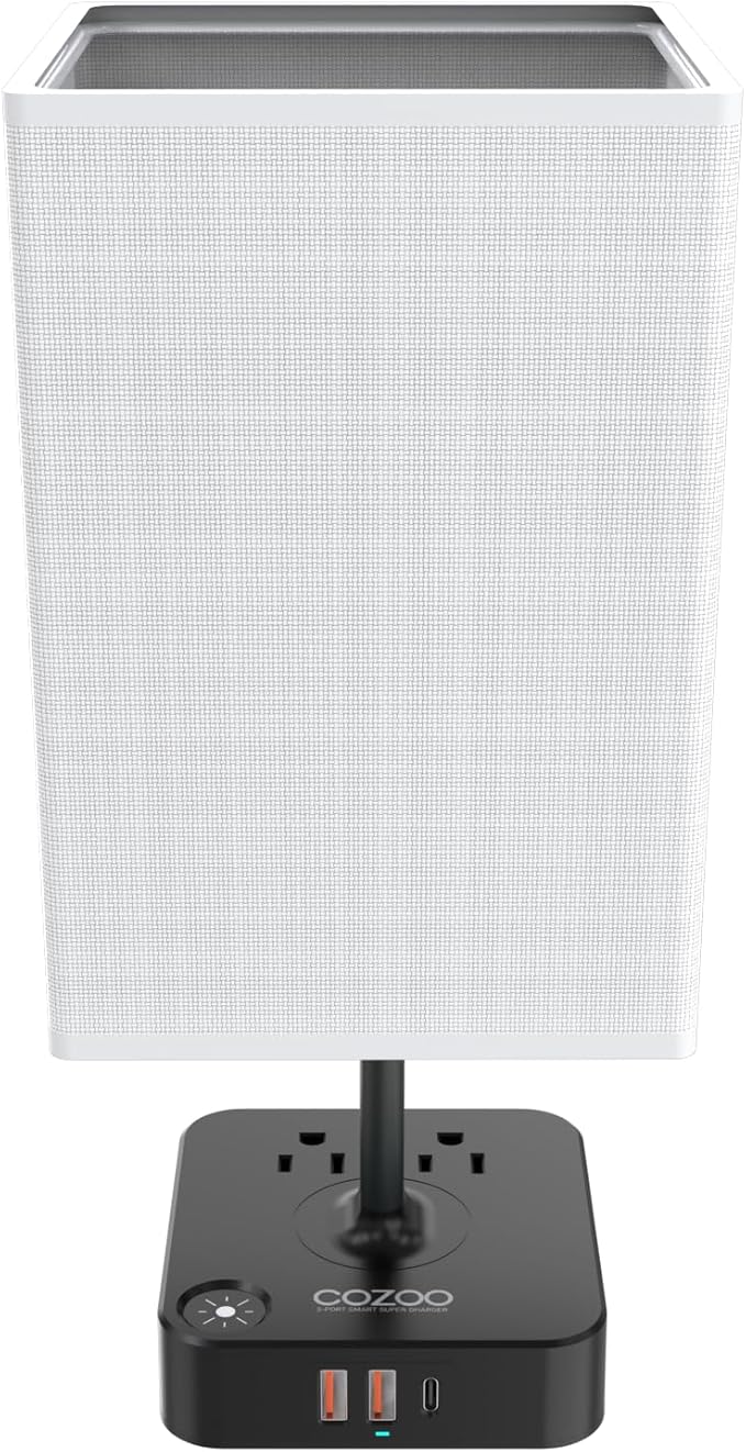 - Minimalist Design:COZOO nightstand lamp with touch switch,simpler and more durable to use.It comes with sleek fabric shade and the fireproof plastics charger base, soften the light, which can protect your eyes,creating a warm and cozy feelings for your home. Perfect for end table,dinning table,coffee table, bed,office, bedroom,guest room, den, nursery, meditation room.This bedside desk lamp can be used with standard e26/e27 led bulbs (included).