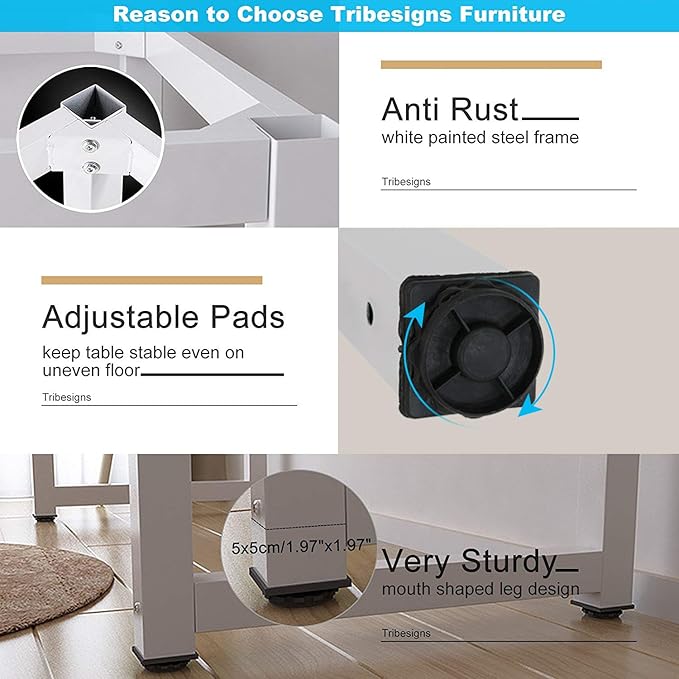 Tribesigns Modern Simple Computer Desk, 47 inch Office Desk Computer Table, Study Writing Study Desk for Home Office, White