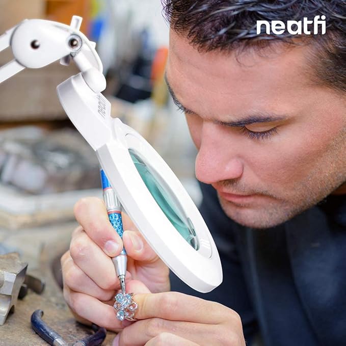 Neatfi XL Bifocals 1,200 Lumens LED Magnifying Lamp with Clamp, 3 Light Modes, Correlated Color Temperature Control (3000K-4500K-6000K), 12W, 120 Pcs SMD LED (White, 6 Inch Lens)
