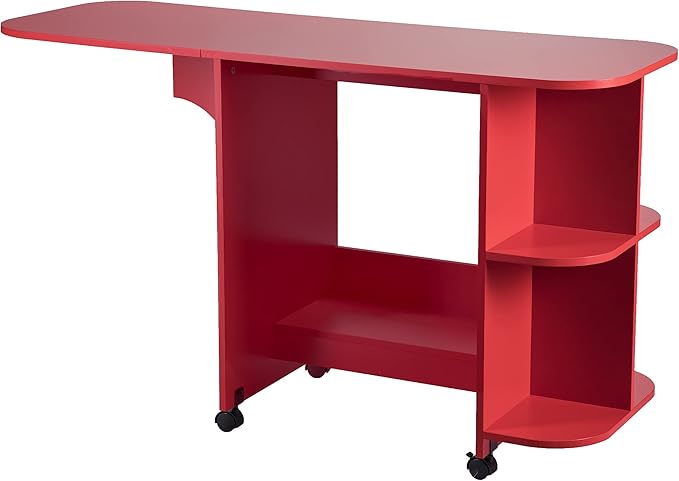 SEI FURNITURE Southern Enterprises Expandable Rolling Sewing Station Craft Table, Red