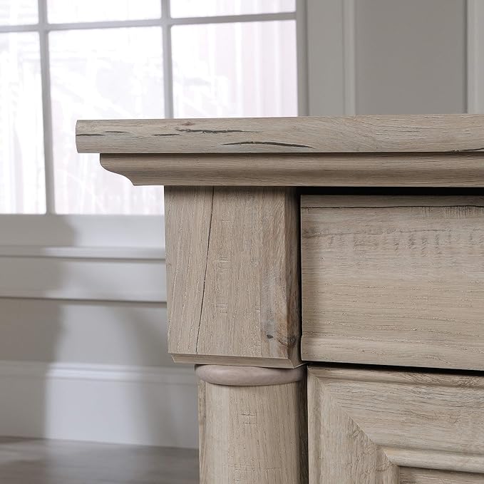 Sauder Palladia Office Desk with Drawers, Executive Desk with File Cabinet Storage, Cable Management, Keyboard Tray, in Split Oak Finish