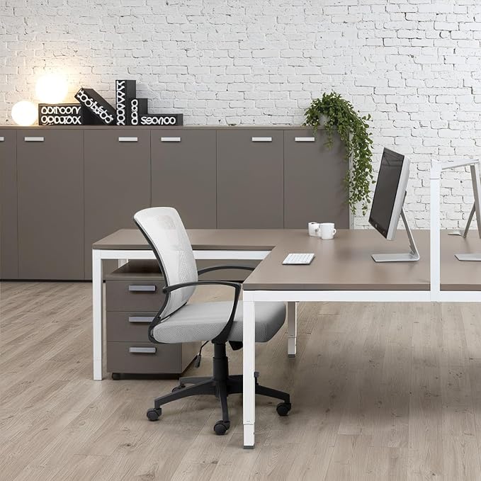 Furmax Office Chair Ergonomic Computer Desk Mesh Chair Mid Back Swivel Lumbar Support with Armrest (1, White)