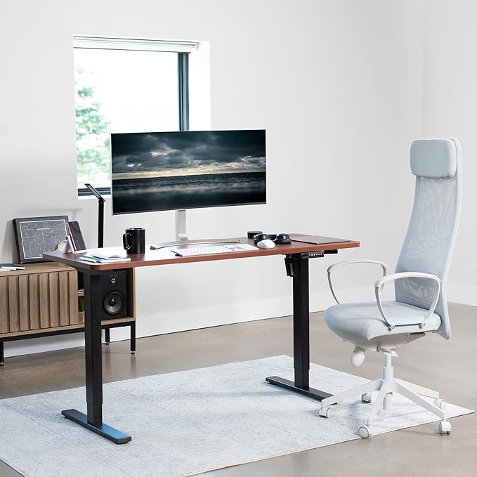 VIVO Electric 60 x 24 in Standing Desk, Memory Height Adjustment, 1B Series, One-Piece Dark Walnut Top, Black Frame, DESK-KIT-1B6D