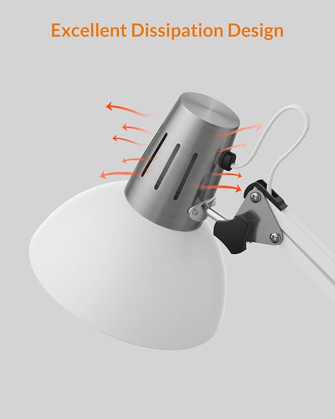 LEPOWER Metal Desk Lamp, Adjustable Goose Neck Architect Table Lamp with On/Off Switch, Swing Arm Desk Lamp with Clamp, Eye-Caring Reading Lamp for Bedroom, Study Room &Office (White)