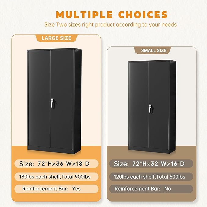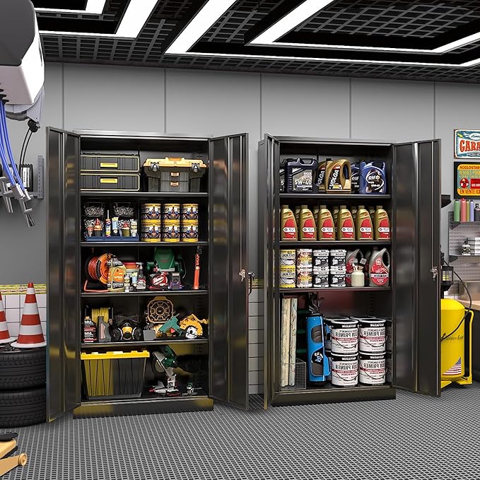 - 【Large space storage】:Greenvelly's new 2025 upgraded oversized metal storage cabinet, 72 X 36 X 17-3/4 inch huge black metal cabinet, can meet most storage needs. The lockable steel garage storage system cabinet with two doors comes with four removable shelves to hold different-sized items as needed. Tool steel storage cabinets are a good choice for businesses.