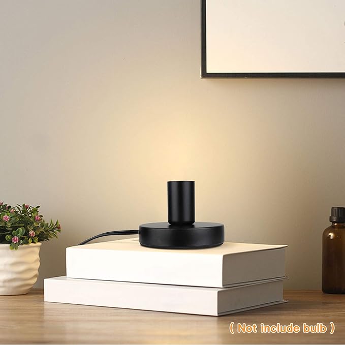 Helunsi Industrial Table Lamp Base, E26 E27 Lamp Base Without Shade, Mini Short Desk Lamp Exposed Bulb Base, Simple Metal Edison Light Bulb Stand, with 5.8ft Cord Switch Plug Bulb Base Holder (Black)