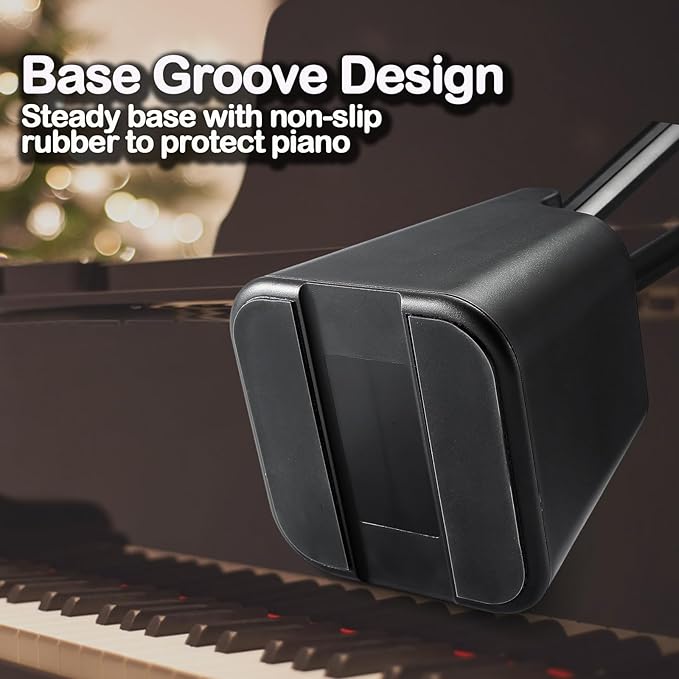 - [Base groove design with rubber and ambient light]: It has a non-slip rubber on the base which is to solve the problem of resonance noise,also to protect the mirror surface of the piano. Ambient light makes surrounding environment more comfortable when playing.More features: The length of piano lights adapter cord is 1.5m
