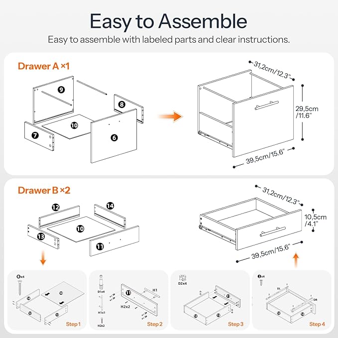 - Easy to Assemble: You will receive detailed instructions, numbered parts, and the tools you need for easy installation. The pre-loaded slides on the side panels reduce the effort on your part to go through all the steps, allowing you to enjoy the process alone or with the family