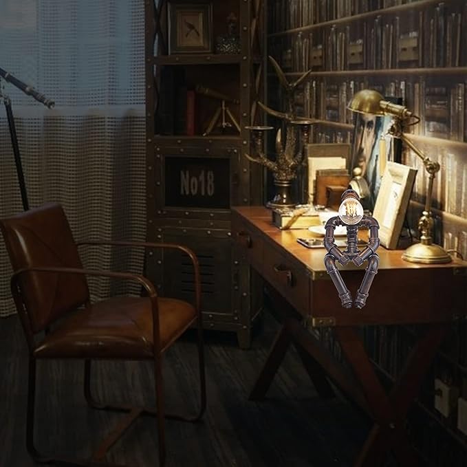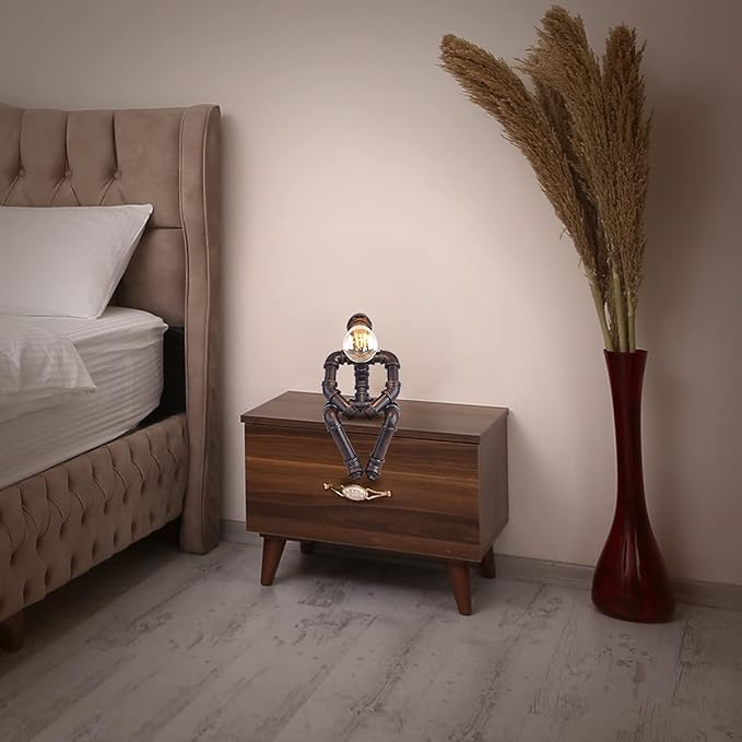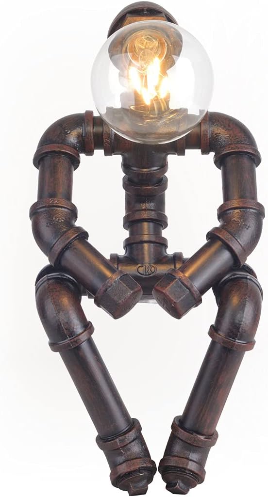 - Rustic Retro Art Decor Gifts industrial iron robot style plumbing pipe table lamp. Made of premium iron. Easy installation.