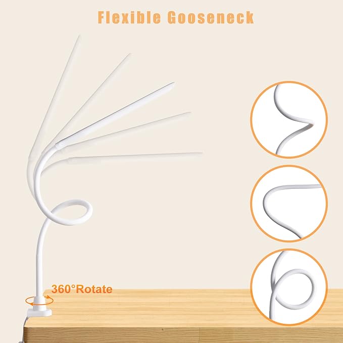 - Swing Arm Desk Lamp: The desk light with a soft flexible gooseneck and 360°swivel base, flexible to adjust light angle. Extensive 54cm/21.2in long reach easily lights up every corner and it can allows you to easily adjust the light direction