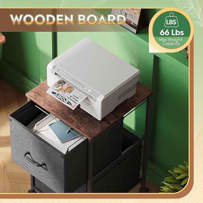 DEVAISE 2 Drawer Mobile File Cabinet, Rolling Printer Stand, Fabric Vertical Filing Cabinet fits A4 or Letter Size for Home Office, Rustic Brown