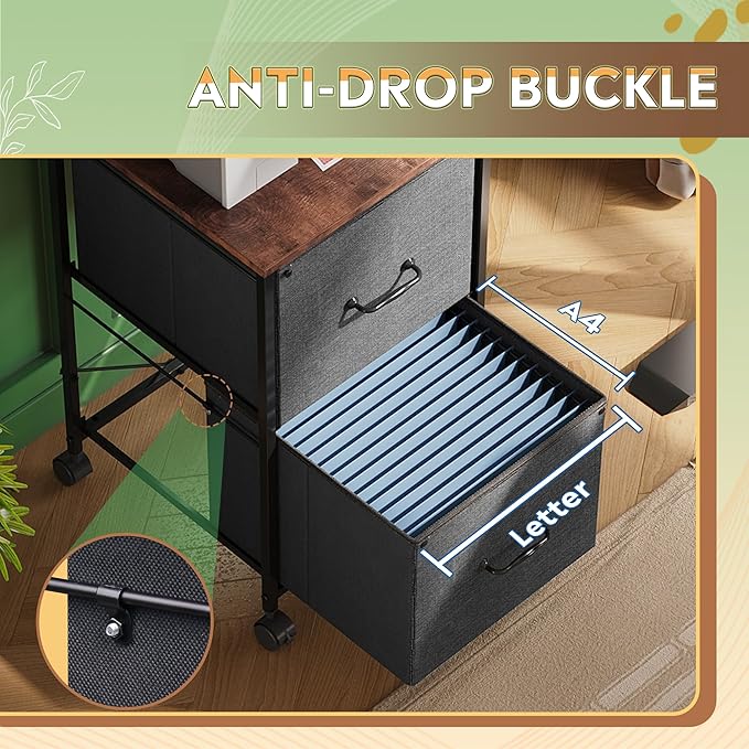 - Easy to Move: Rolling on 4 wheels, this mobile file cabinet can fix or move around your home office freely. Built-in brakes on front 2 casters to keep it in position and add stability. Unique fabric drawer design makes it only weigh 22 lbs. and light to move.