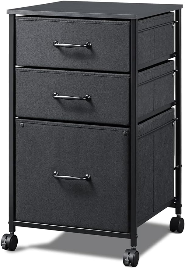 - Easy to Move: Rolling on 4 wheels, this mobile file cabinet can fix or move around your home office freely. Built-in brakes on front 2 casters to keep it in position and add stability. Unique fabric drawer design makes it only weigh 22 lbs. and light to move.
