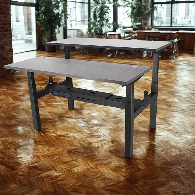 Lift It, 48"x24" Electric Double-Sided, Adjustable Height Standing Office Desk for Office or Home, Dual Motor, 4 Memory Digital Control with USB Charging, Charcoal Pattern Top, Black Frame