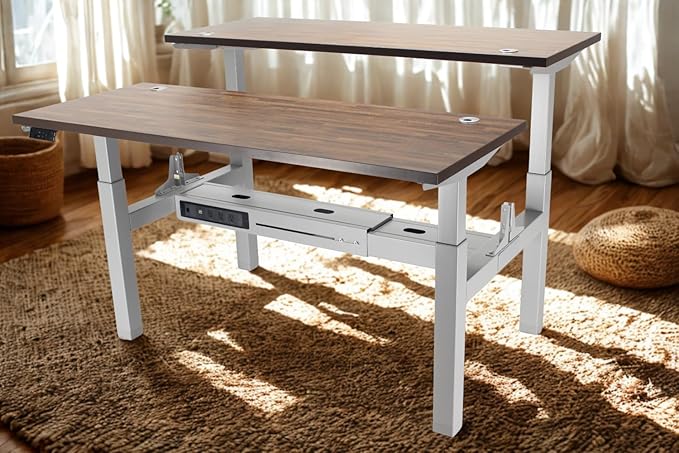 Lift It, 60"x24" Electric Double-Sided, Sit Stand Height Adjustable Ergonomic Office Desk for Office or Home, 4 Memory Digital Control with USB Charging, Walnut Top, Silver Frame