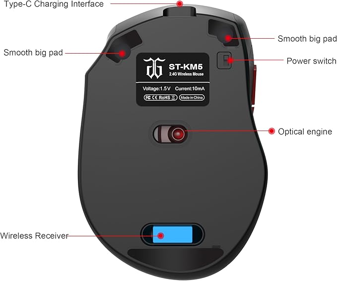 - Charging Instructions — There will be a little delay if the battery power of the keyboard and mouse is too low. Please use a DC:5V adapter to charge it. The charging indicator will turn off when fully charged(If you use the USB interface to charge, due to the small current and large battery capacity, the charging time will be very long)