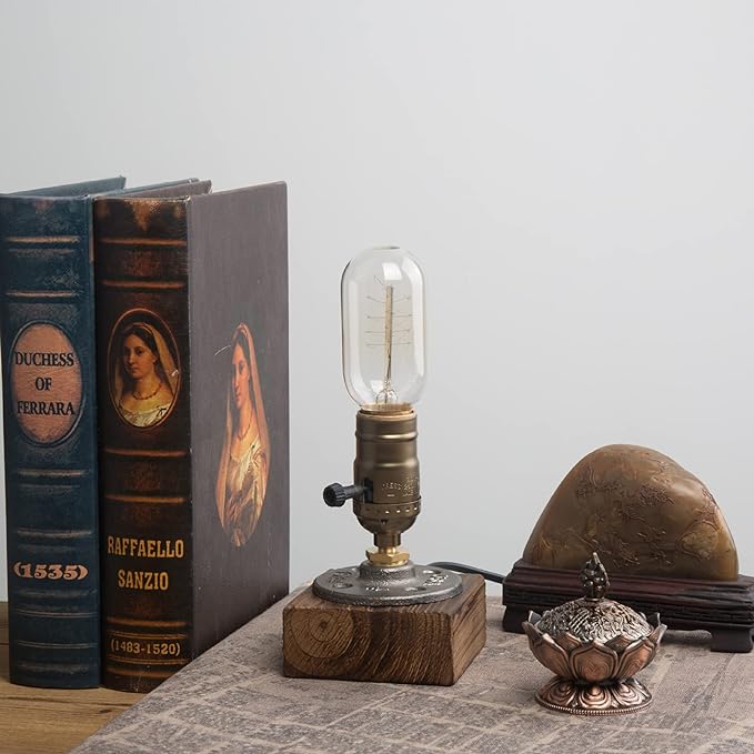 - * RETRO DESIGN VINTAGE WOODEN LAMP - Design with high 13*length 9*width 3.5cm/5*3.5*1.3 Inch.This old-fashioned style look and wooden base light makes the cafe bar, home or office warm and welcoming.