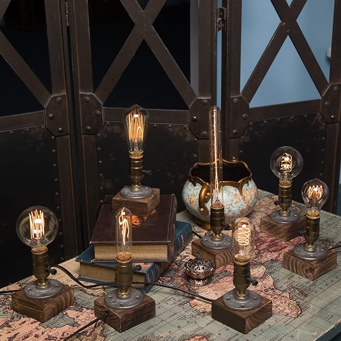 - * RECOMMEND BULBS - Bulb is no included. The vintage retro wooden base industrial dimmable lamp could be used with E26 Max.60 Watts Edison bulbs or dimmable LED lights.