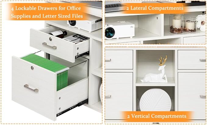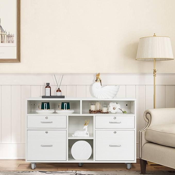 - 【SPACIOUS DRAWERS】This is a heavy-duty functional versatile white file cabinet that provide ample file storage for your home&office. 4 Drawers comes with full extension slides that glide easily in and out. File drawers accommodate letter hanging files and each drawer has lock with two keys