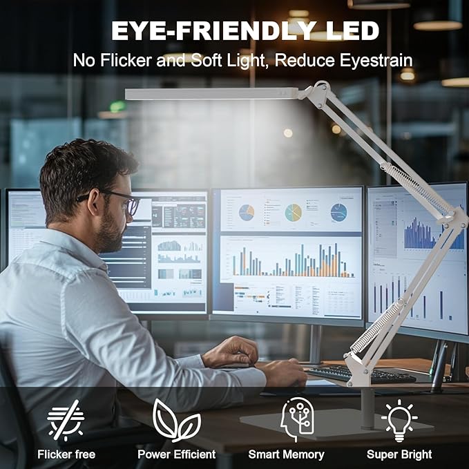 - 【Memory Function & Many Scenes】The LED desk lamp has memory function, it will restore your last setting when you use next time. Suitable for office, workbench, reading room, painting, study, bedside table lighting, nail salon.