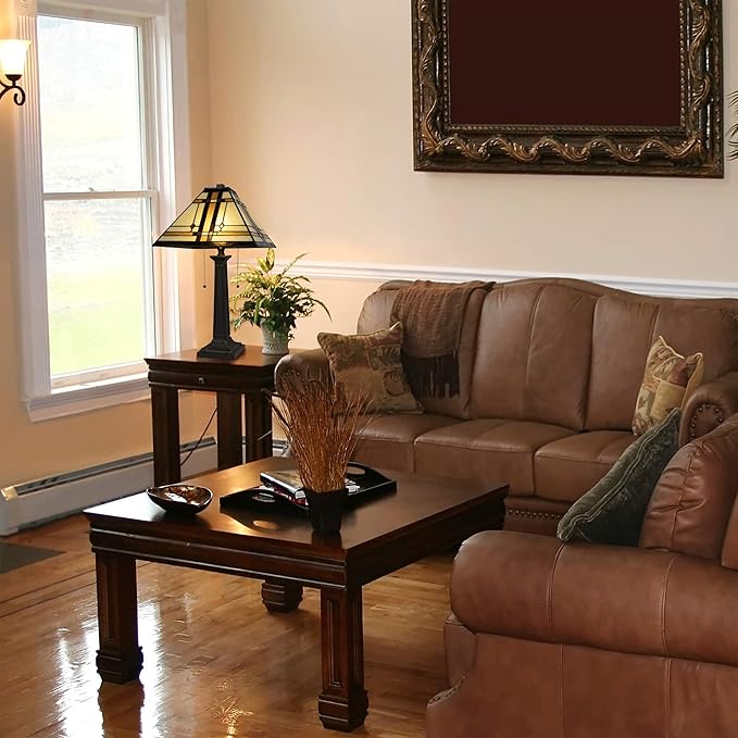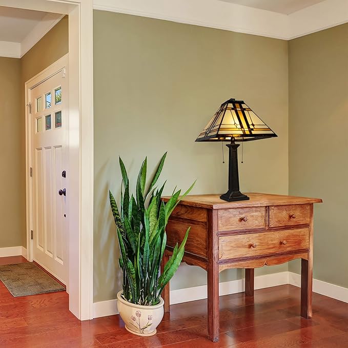 Lavish Home Tiffany-Style Table Lamp – Mission-Design Art Glass Lighting with 2 LED Bulbs Included – Vintage-Look Handcrafted Room Décor