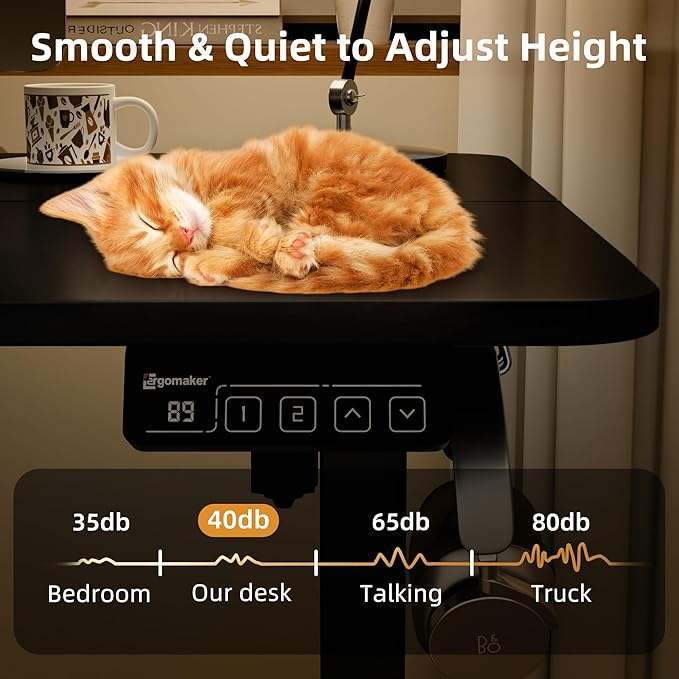 - SOLID CONSTRUCTION: The height-adjustable desk is made of heavy-duty steel, with a weight capacity of 154 lbs and travel speed of 1" per second, keeps the desk stable even when it rises to the highest point. The soft start/stop functions make the desk move smoothly and quietly (<50dB)