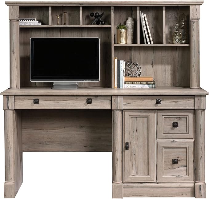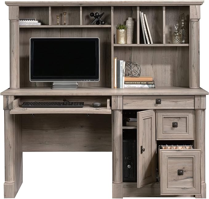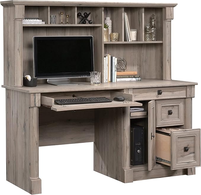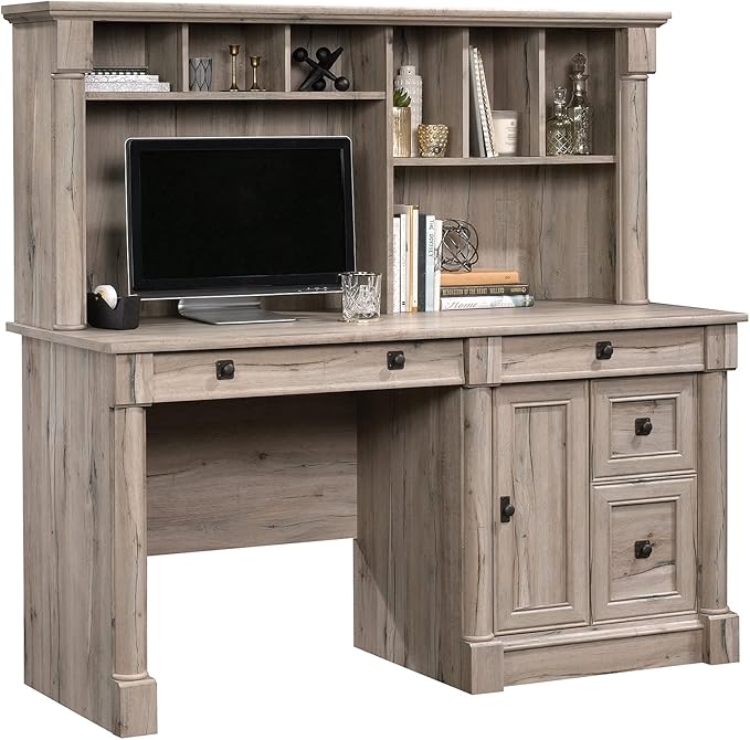 Sauder Palladia Computer Desk with Hutch, Home Office Desk with Drawers, File Cabinet Storage Drawer, Cable Management, Keyboard Tray, in Split Oak Finish
