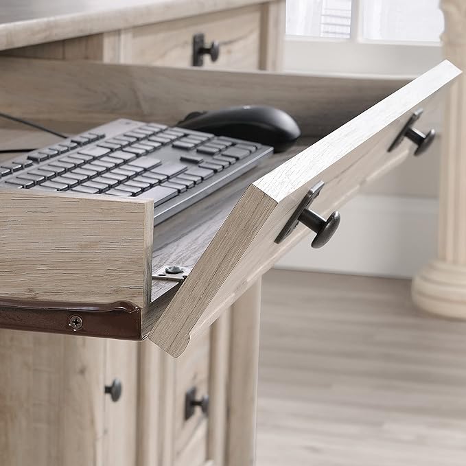 - AMPLE STORAGE SOLUTIONS – Featuring a large drawer with a flip-down panel for your keyboard, plus two additional drawers for office supplies, this desk keeps your workspace organized and clutter-free