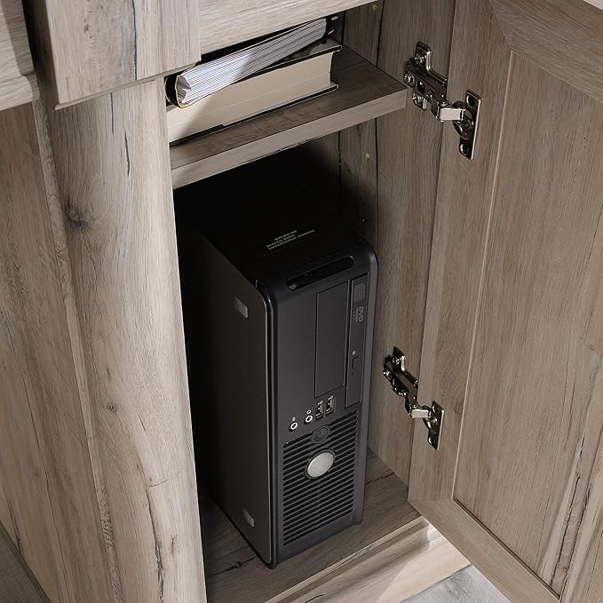 - HIDDEN STORAGE FOR A TIDY LOOK – The concealed area behind the door is perfect for a vertical CPU tower and includes an adjustable shelf, maintaining a clean aesthetic while providing functionality