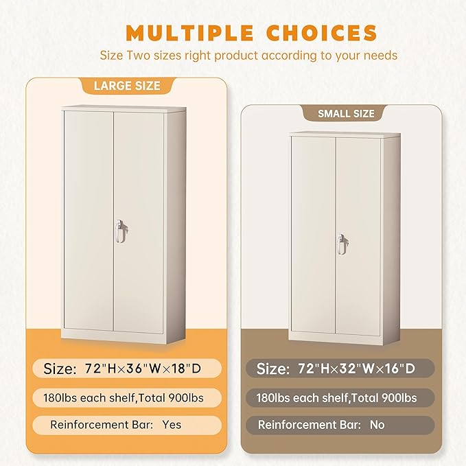 - 【Heavy Duty Steel Frame】Our high metal cabinet are made of heavy duty steel, which can be more precisely shaped and increase "hardness", which is 20% stronger than general steel. Coated with phosphorus-free powder to prevent long-term scratches on cabinets.