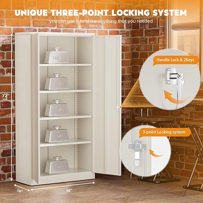 - 【Locking Steel Cabinets】: 2 doors can be opened more than 90°, each door is also equipped with extra steel ribs to enhance its stability. A rubber bumper on top of the door allows the door to close quietly and tightly. 3-point locking system with 2 keys prevents unauthorized entry and keeps your documents and important items private.