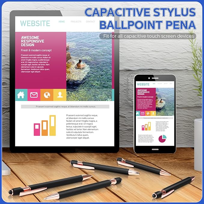 Tenare 12 Pieces 2 in 1 Stylus Metal Ballpoint Pen with Stylus Tip, 1.0 mm Black Ink Ballpoint Pen for Touch Screens(Black and Rose Gold)