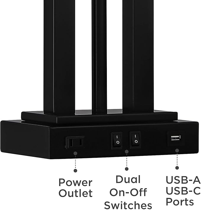 - 【Pre-Assembled Shade】Features two built-in USB charge ports in the base,m one Type-A and one Type-C, plus a power outlet. Offers easy charging of phones and other electronic devices. Black finish. Metal construction. Oatmeal linen fabric shade. 8-foot long cord.