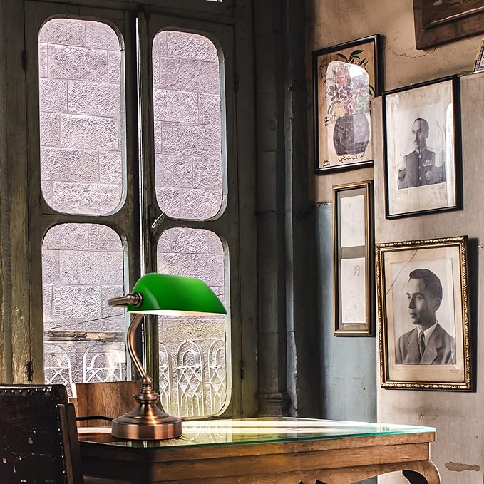 - Rotatable lampshade: The lampshade of this mini banker desk lamp made of green glass can be rotated at any angle until the desired lighting effect is achieved. (Exclude light bulb)