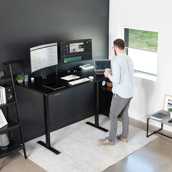 - Powerful Electric Motor: Enjoy a height range of 29.2” to 48.4” with this frame’s powerful motor and strong legs using precise telescopic height adjustment