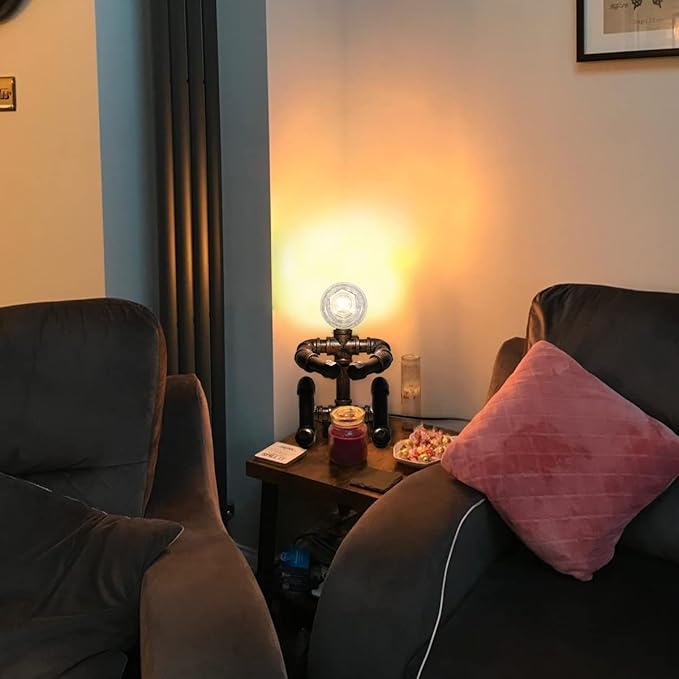 - Rustic Retro Art Decor Gifts industrial iron robot style plumbing pipe table lamp. Made of premium iron. Easy installation.