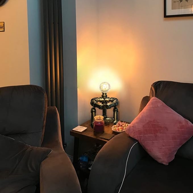- Rustic Retro Art Decor Gifts industrial iron robot style plumbing pipe table lamp. Made of premium iron. Easy installation.
