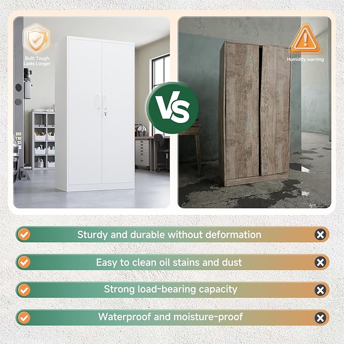 - Durable Metal Material: Letaya metal storage cabinet is made up of 0.8mm steel ,rugged and not easily deformed, plate adopted environmentally powder coated finish, moisture proof ,capacity to resist corrosion and rust