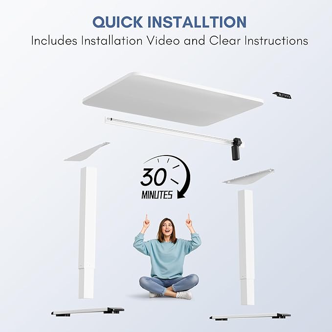 - 【Durable Quiet Motor】The motor is made of good quality and each has been tested more than ten inspection processes before assembling to the desk. You can adjust the height between 28.7~46.4 inches at a speed of 1"/second with low noise (under 50 dB). This standing desk uses an advanced motor with longer service life, each motor can be used more than 10,000 times and durable enough of 2 years' daily use.