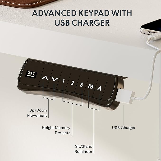 - Powerful Electric Motor - Enjoy a height range of 28.9" to 48.2" with the powerful dual motor and strong 2.7" wide legs using precise telescopic height adjustment. The easy-to-use push button controller features memory presets to save your preferred heights.