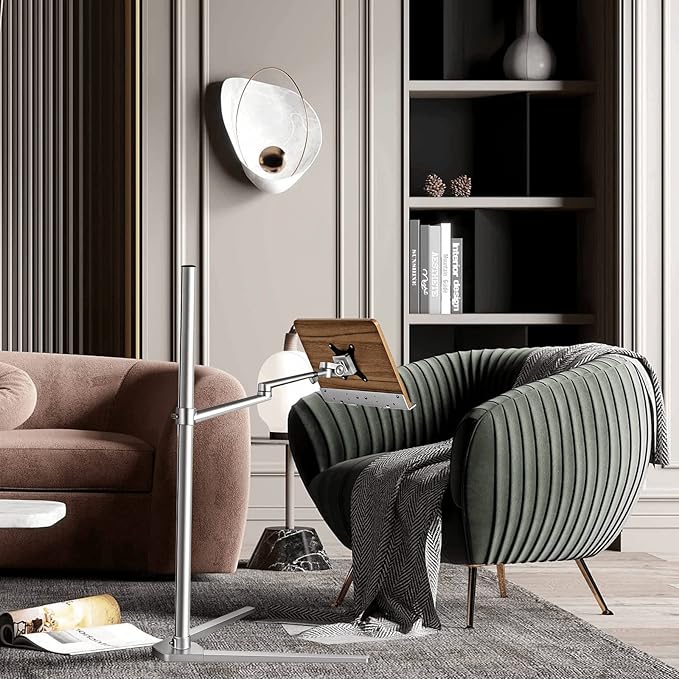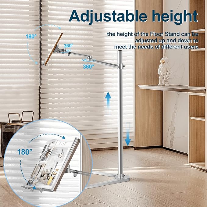 - Adjustable Design : 360° rotated and liftted metal arms (Height can be adjust from 0" to 35") can be adjusted to almost any Angle you need, such as reading while sitting or lying down in bed、hold the laptop/phone/tablet when doing yoga or anytime you want free your hands.