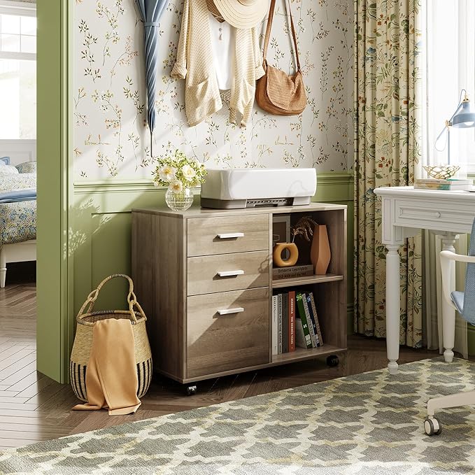 - MULTIFUNCTIONAL & STYLISH: This filing cabinet with open storage spaces, file drawers and storage cabinet is designed to keep the office machines, paper, files and suppliers organized. It can be fixed beside or under desk. The sleek and modern finish is an easy fit for office or home study.